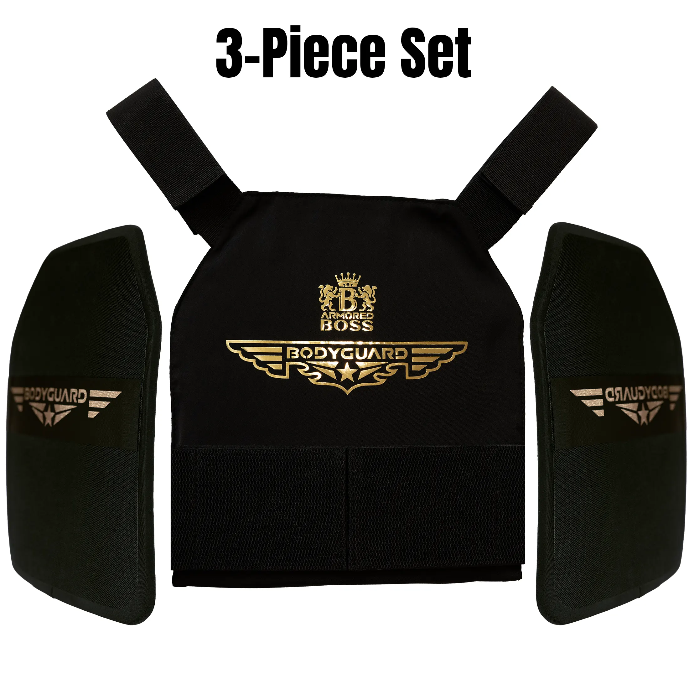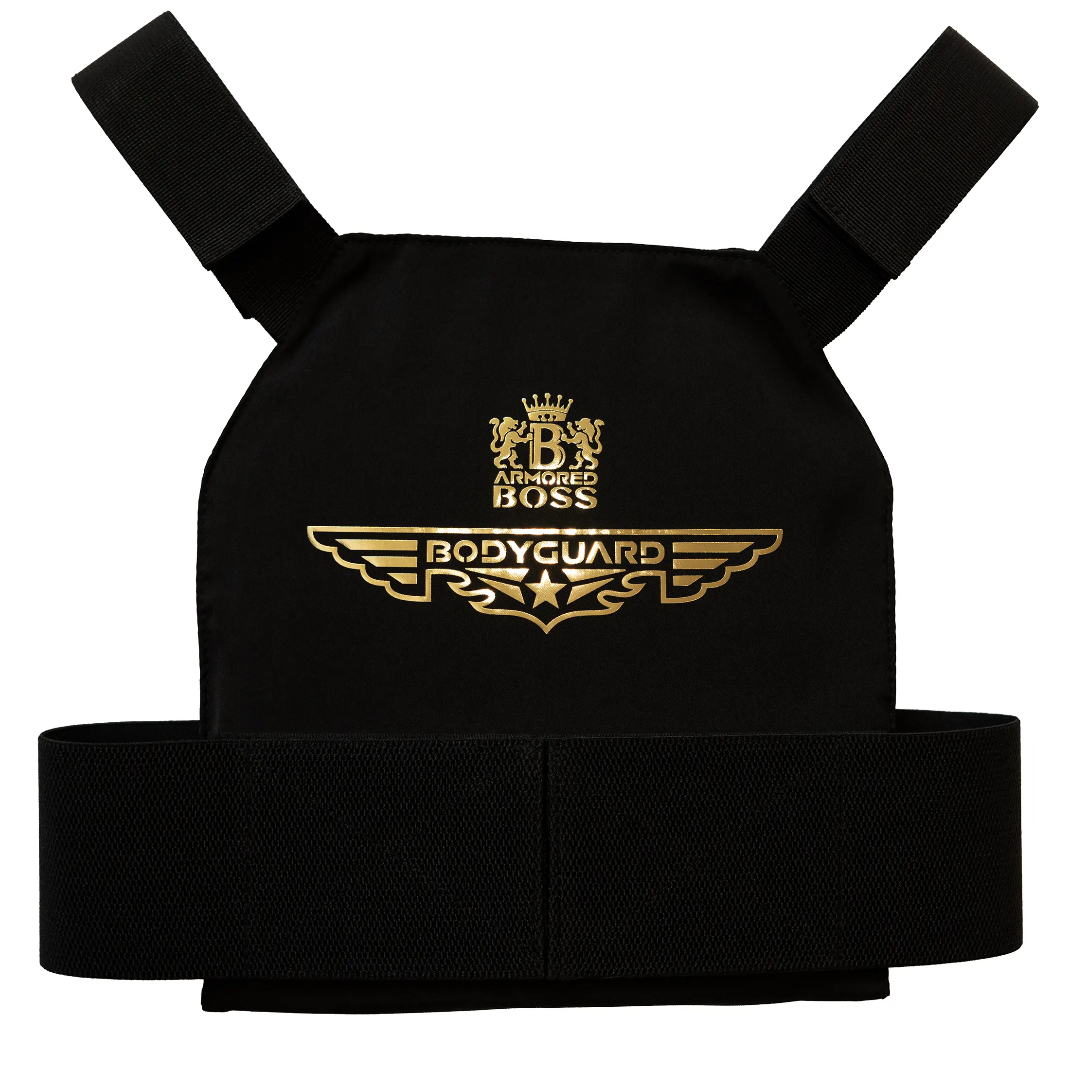 The Bodyguard™ Concealable Armored Vest by Armored Boss™ combines uncompromising NIJ HG-2 ballistic protection with luxury design. Featuring front and back plate compartments with included 2 multicurve hard plates, breathable spacer mesh interior, adjustable Velcro straps, and iconic gold detailing. This limited-edition vest delivers discreet security with unmatched style.